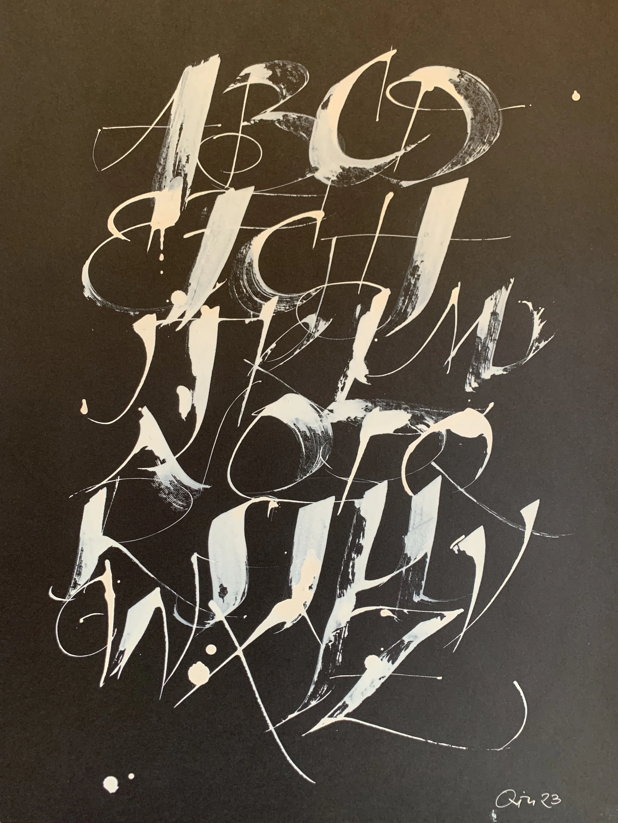 Schreiben ist für mich essenziell. Dass ich dabei zwischen der humanistischen Kursiven und dem Kalligrafieren von Kanji (Schriftzeichen) virtuos wechsele, hängt damit zusammen, dass ich beidem über Jahrzehnte treu geblieben bin. Dabei entsteht alles aus einem fließen, erforschen und einem mich immer wieder neu herausfordern.
